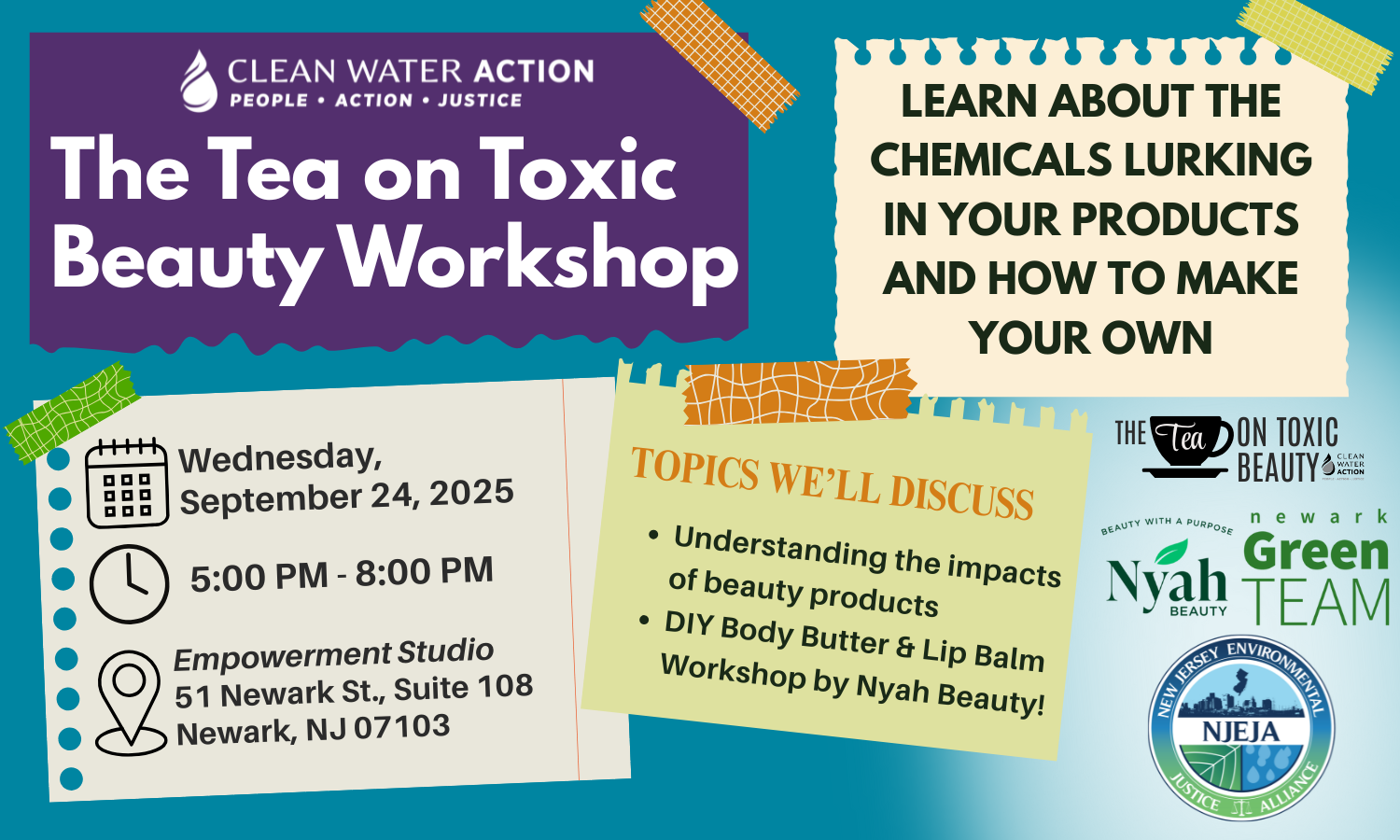 Did you know that half of all beauty products marketed to Black women contain harmful chemicals? Join Clean Water Action, Nyah Beauty, and the Newark Green Team for a hands-on evening where we unpack the truth about toxic ingredients—and craft safer alternatives you’ll love to use every day. This session is interactive and space-limited, so be sure to RSVP early!