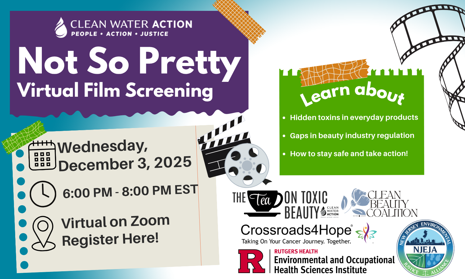 Beauty shouldn’t come with a warning label, yet millions of us are exposed to harmful chemicals every day. We trust the products we use every day, but what happens when that trust is misplaced? Join Clean Water Action for “Not So Pretty” - a virtual film screening and community conversation uncovering the hidden dangers in everyday beauty and personal care products.