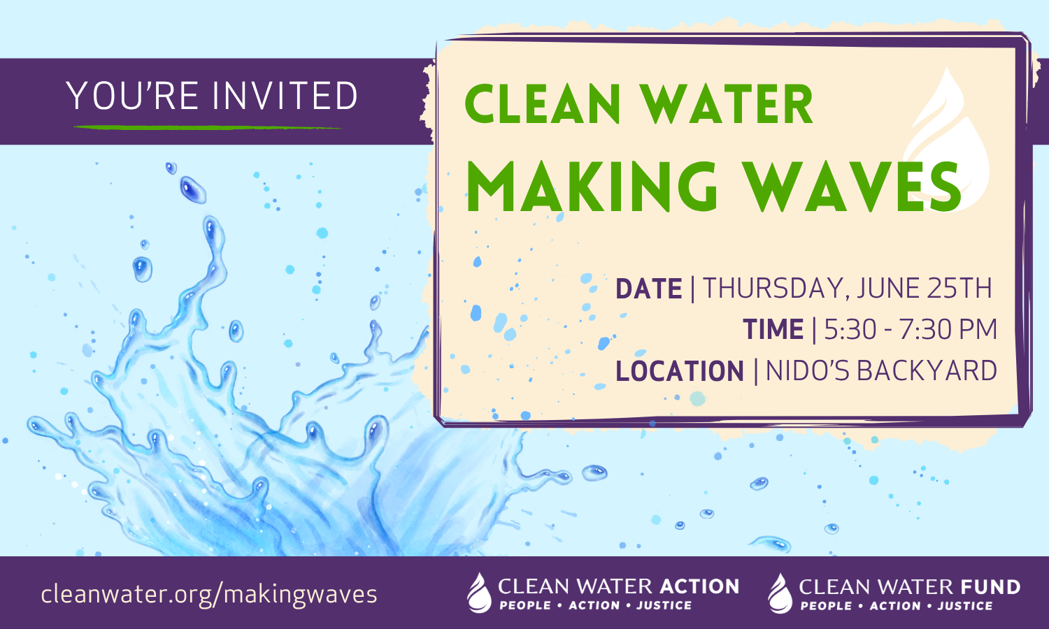 Contributions to Clean Water Fund, a 501(c)(3) nonprofit, are tax deductible to the extent allowed by law. If you would like to support Clean Water Action, a 501(c)(4) nonprofit, please sign up for this event through this page.