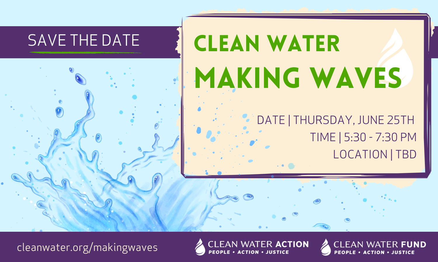 Please note that contributions to Clean Water Action, a 501(c)(4) nonprofit, support community-based campaigning for stronger environmental and health protections and are NOT tax deductible. To make a tax-deductible donation, please register for this event through Clean Water Fund here.