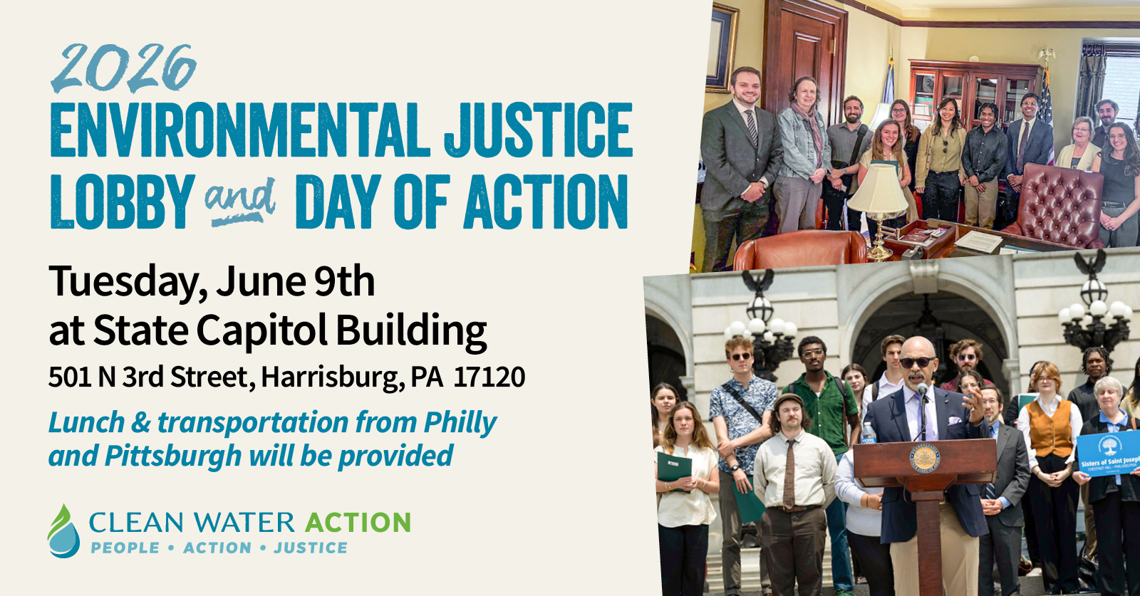 This is your chance to meet directly with your legislators about these issues and press them to pass bills that prohibit PFAS in products, help municipalities put in place baseline protections from AI data centers, prevent adverse risks to our water sources from AI data centers, and ensure that cumulative impacts are factored into permitting designs for Environmental Justice communities. You’ll also be able to connect with like-minded advocates from across Pennsylvania.